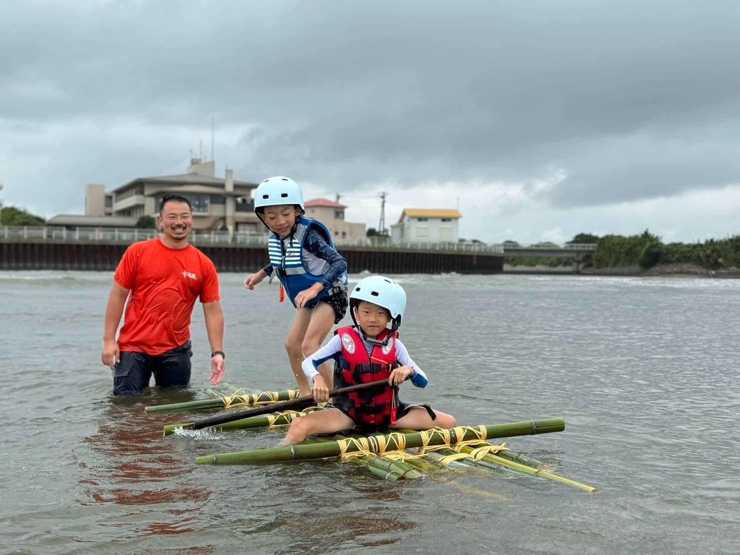 実際に自分たちで作った筏に乗れるかチャレンジ!