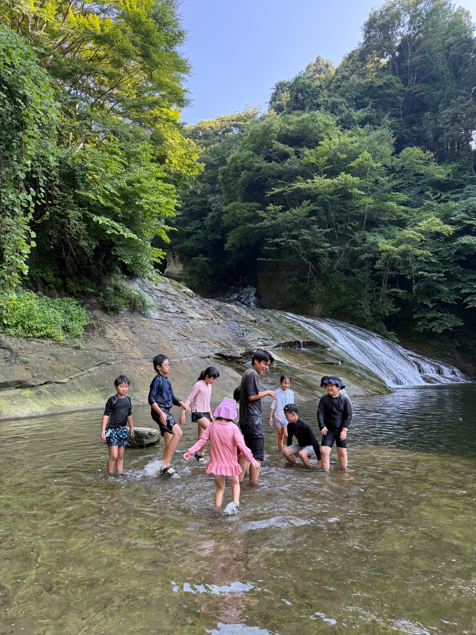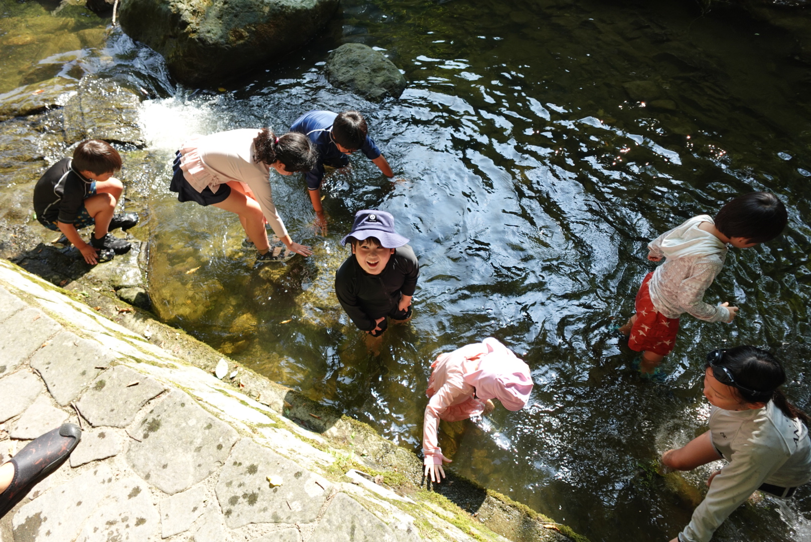 夏の自然を感じながら、水遊びや探検を楽しみます。