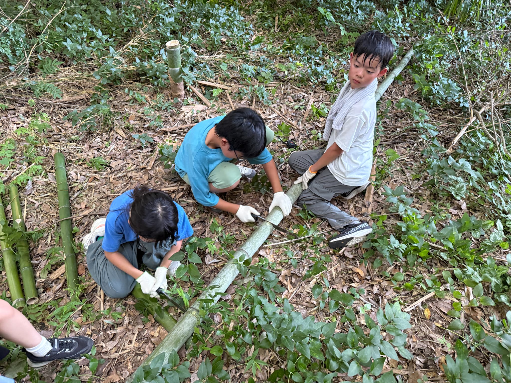 秘密基地・筏づくりの材料集めを行います。