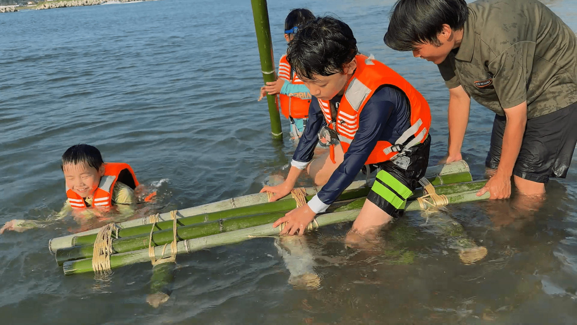 実際に自分たちで作った筏に乗れるかチャレンジ!