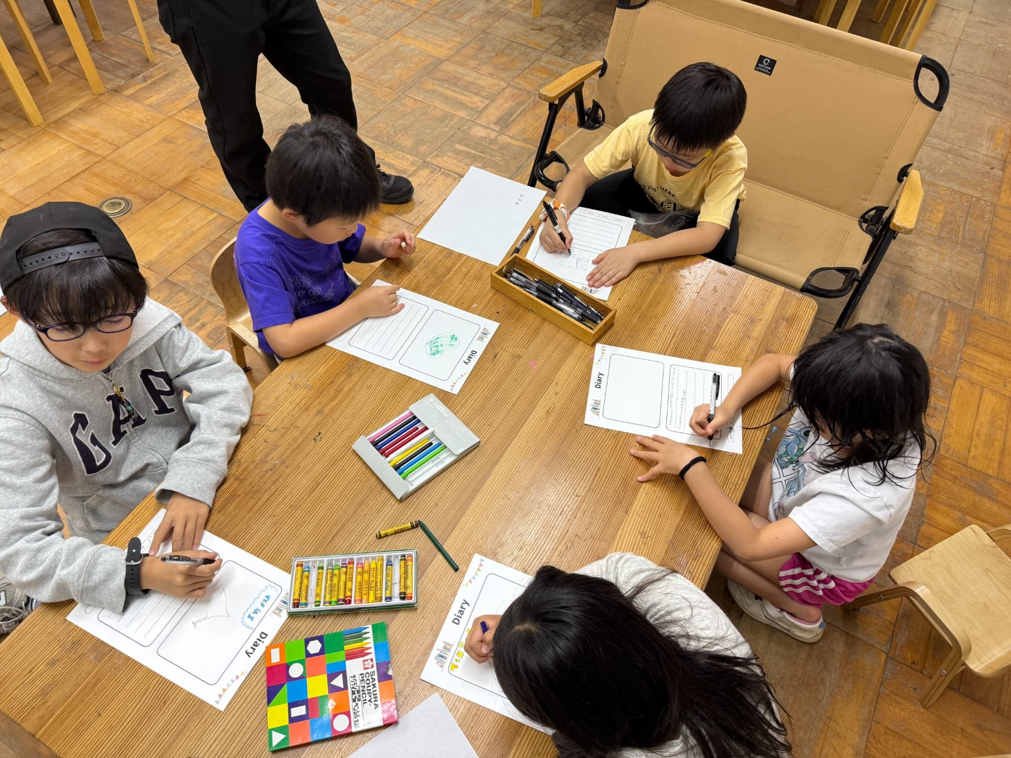 夜は1日の体験を振り返り、うまくいったこと、難しかったことを絵日記に。